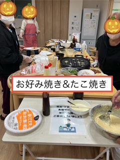 ハロウィンの日、向新庄では「お好み焼き・たこ焼き・焼き鳥パーティー」を開催しました!