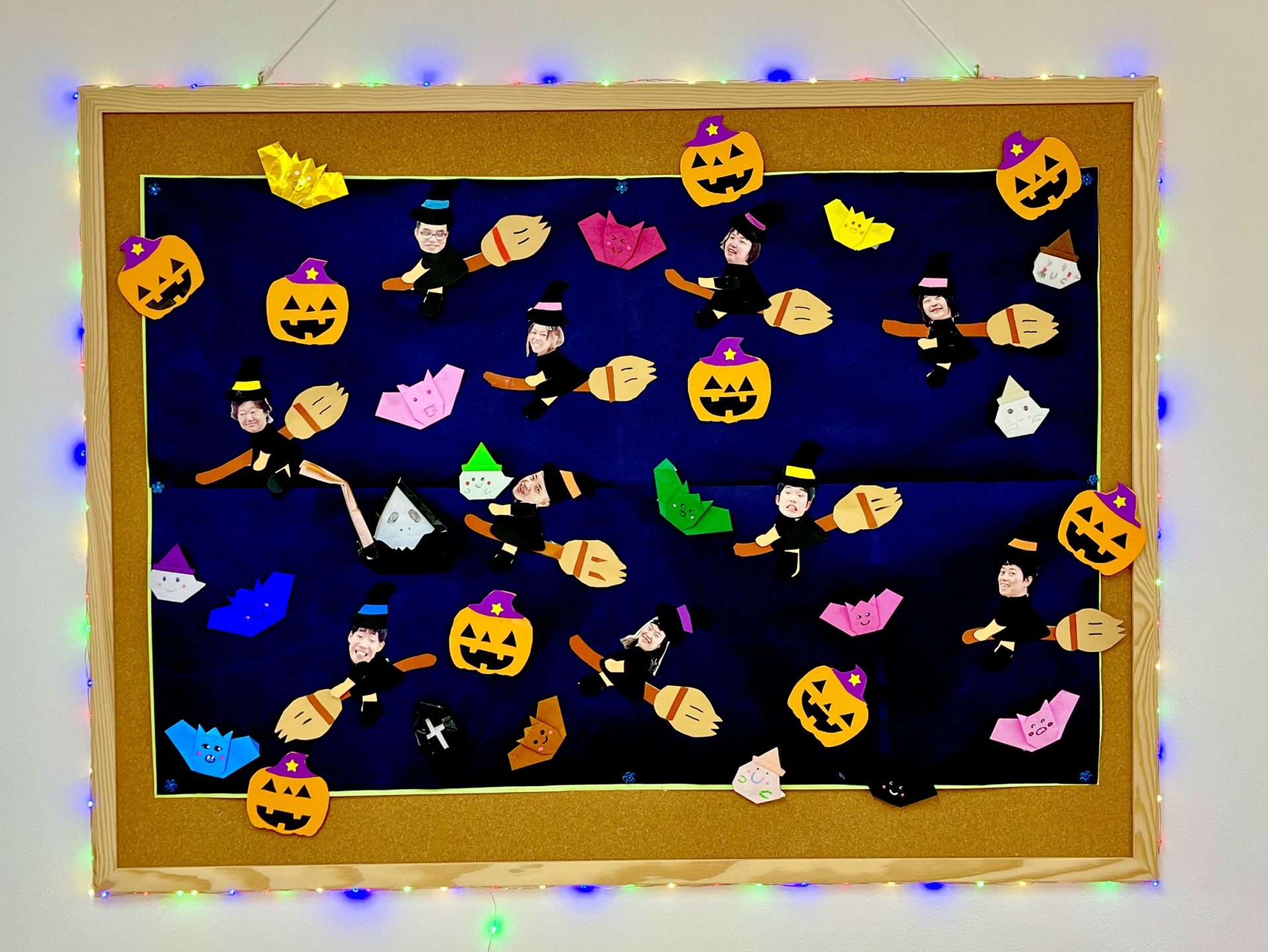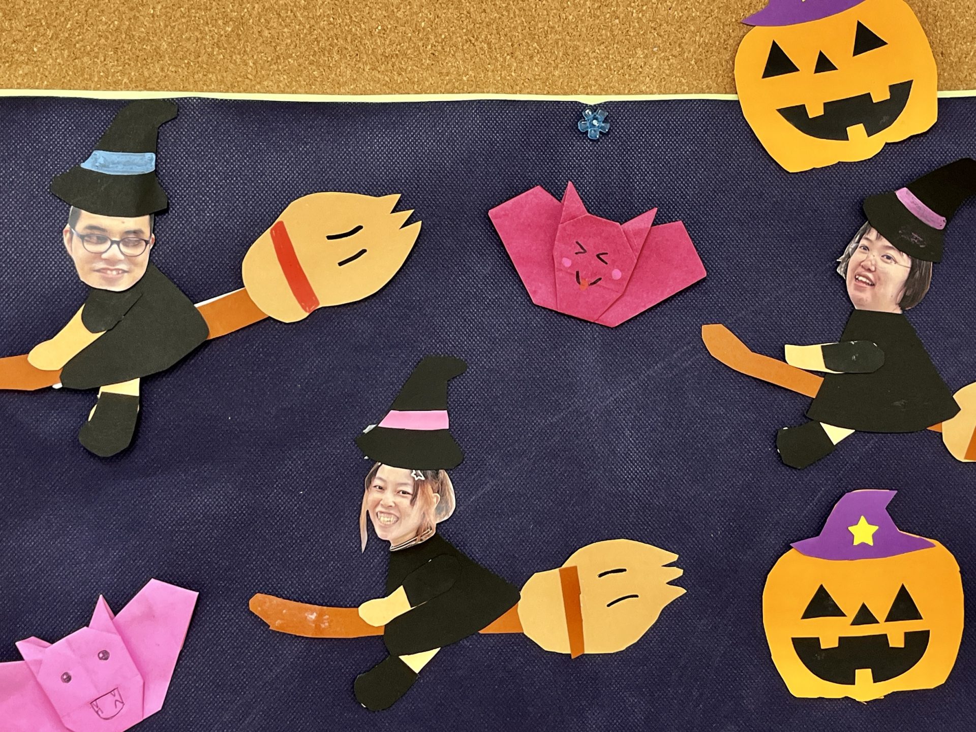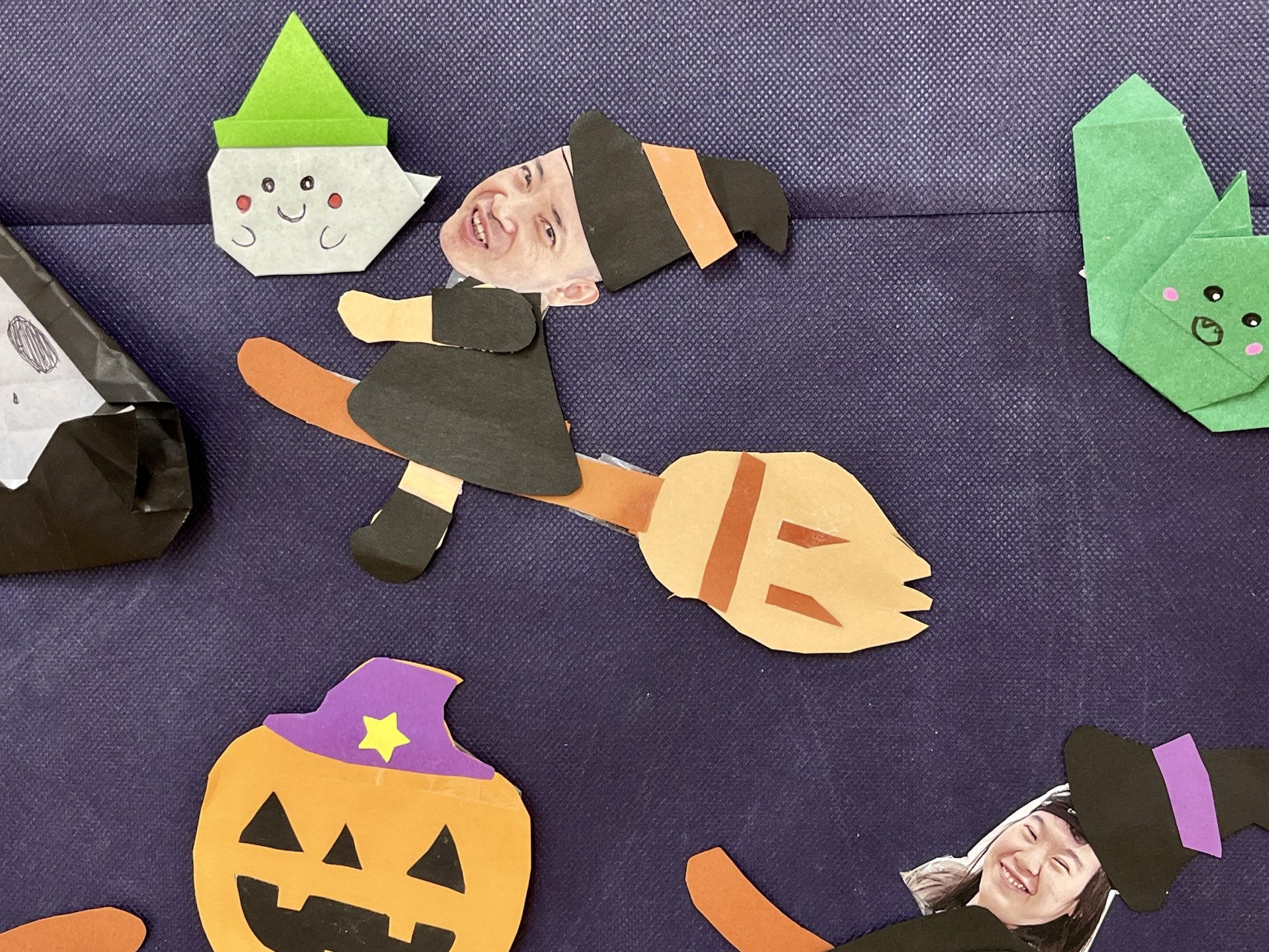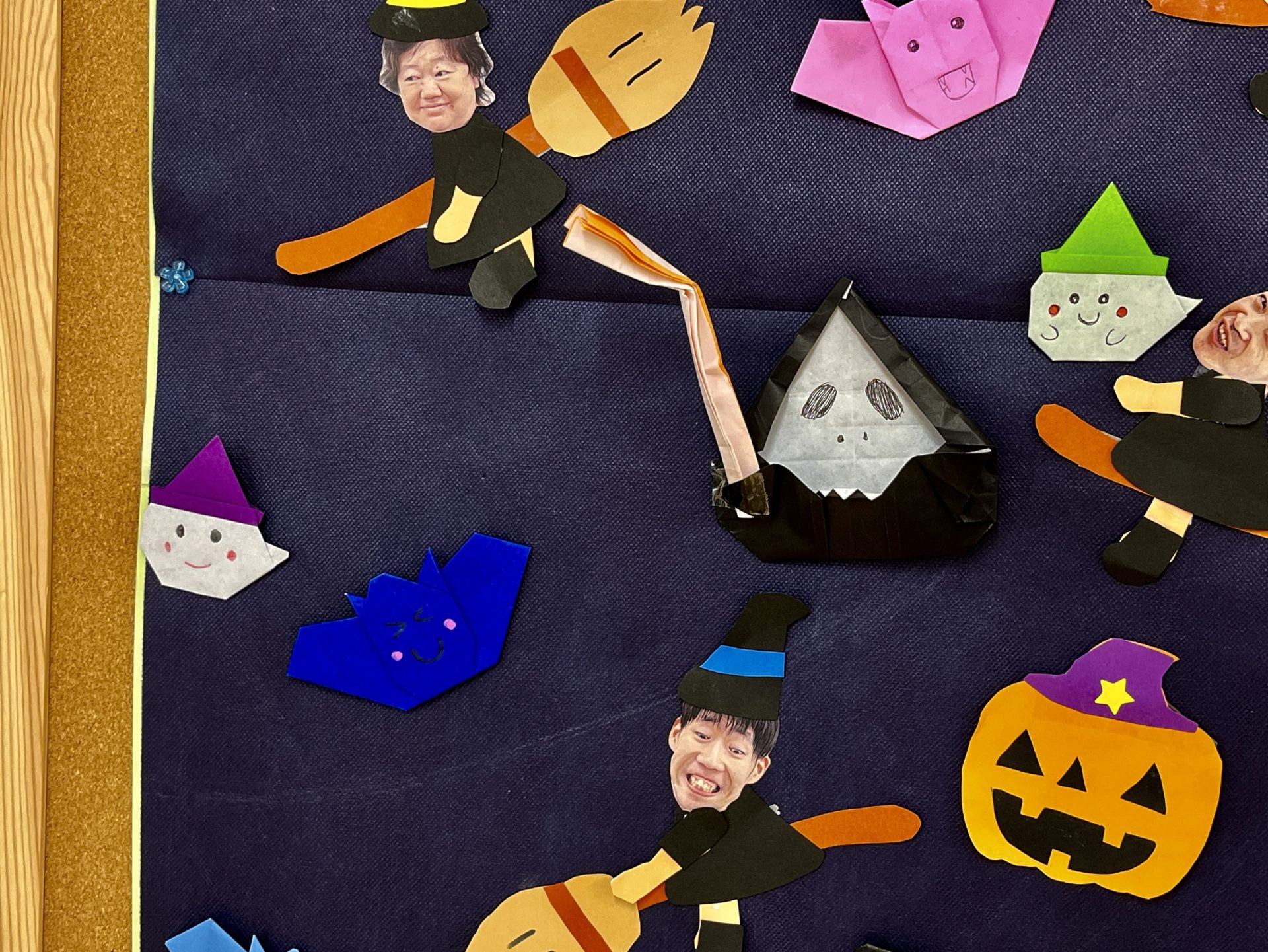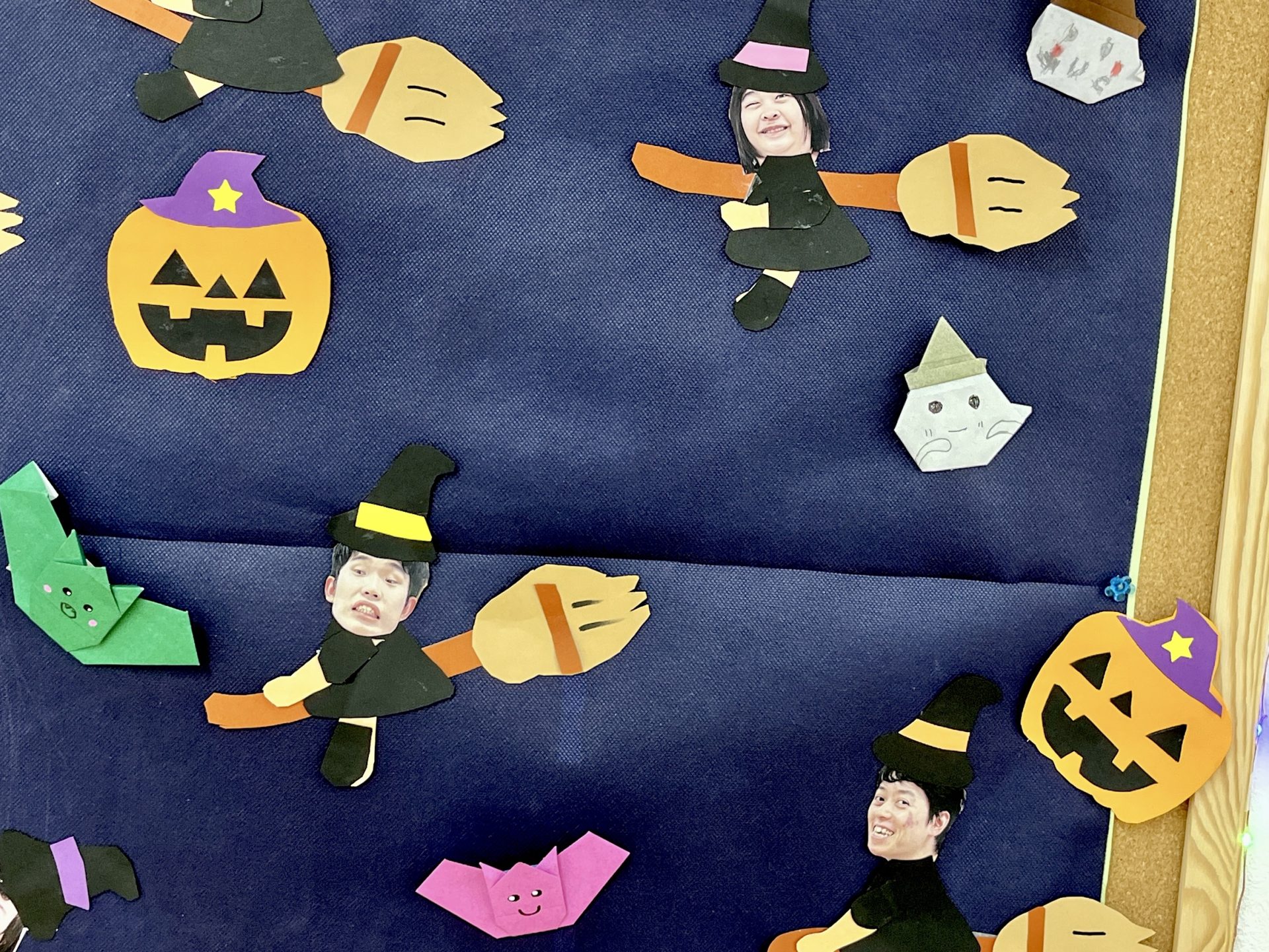 へやにはハロウィンソングが流れ、壁面の作品がお出迎えです。