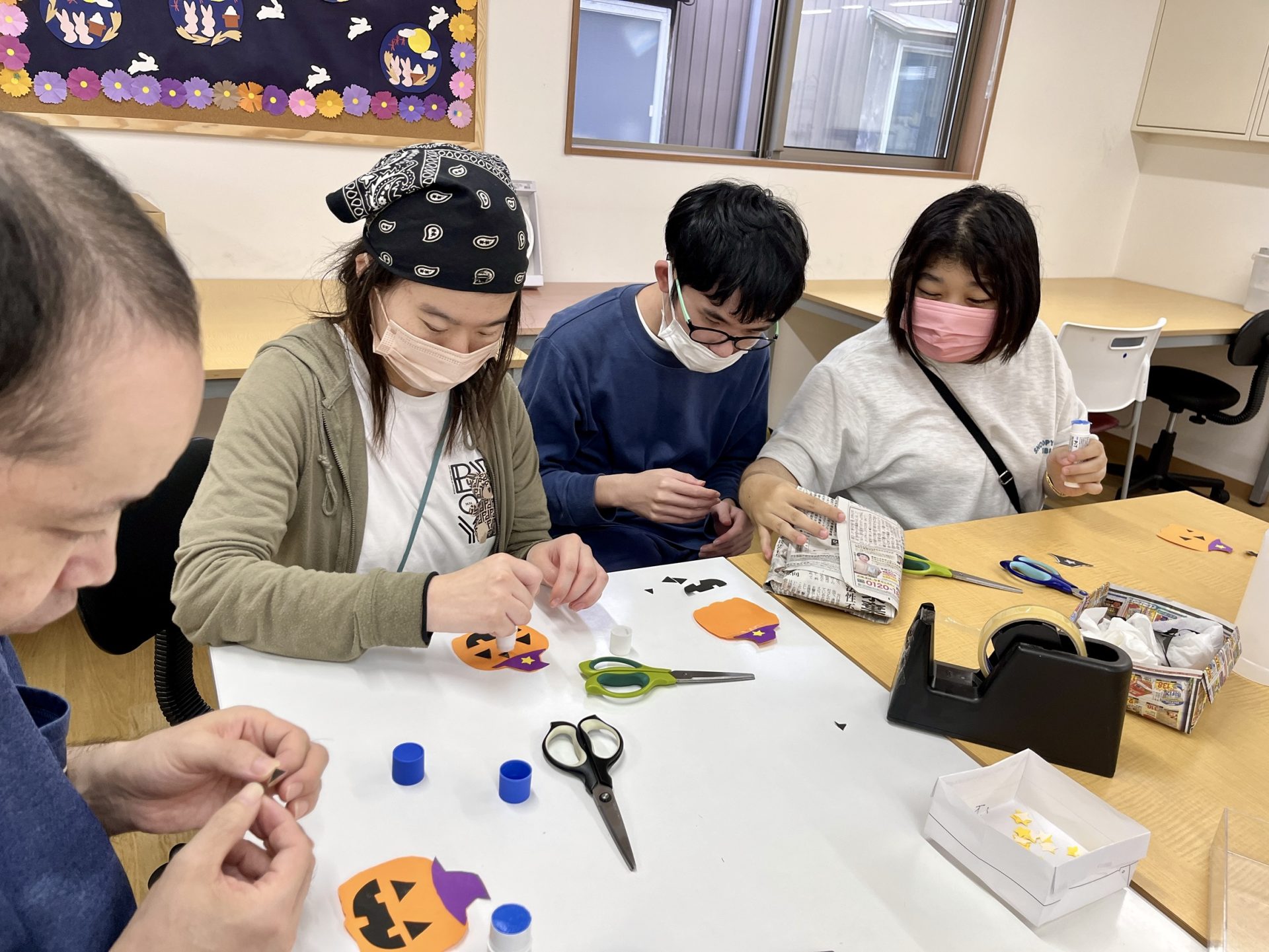 みんなで意見を出しあいながら、「どんな飾りにする?」「おばけはかわいいの?こわいの?」と、しこうさくごの時間でした。