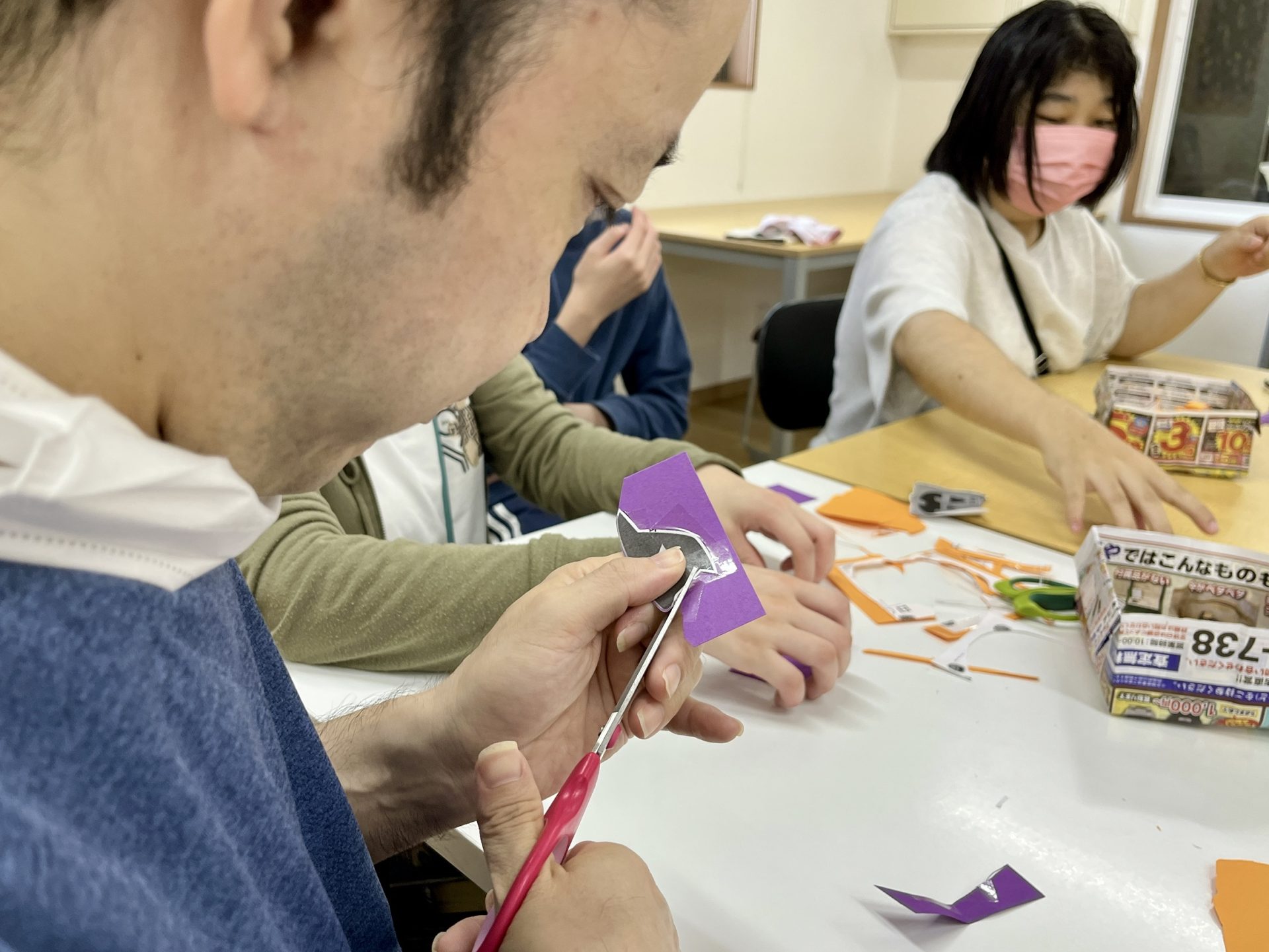 「おもしろい顔ができた!」「こっちはこわい~!」と会話もはずみました。