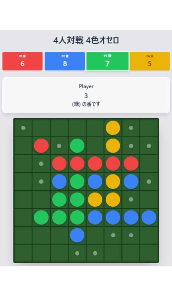 オセロの遊び方は知っていても、4色になるとどうなるのか分からず、皆さん頭をフル回転させながらゲームを楽しんでいました。