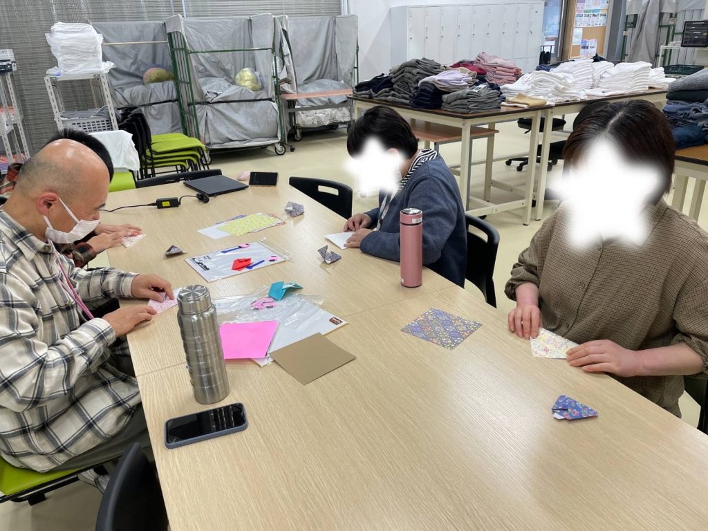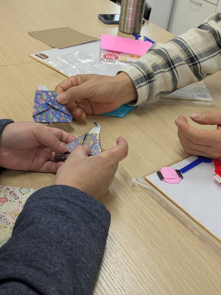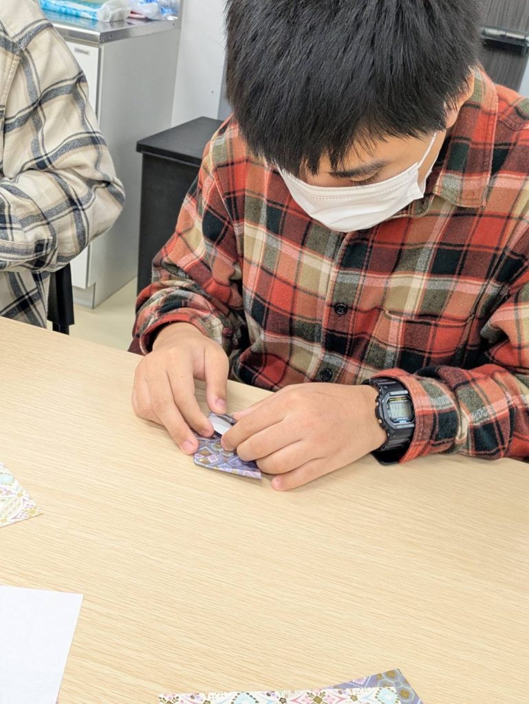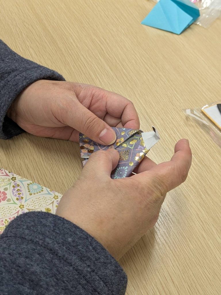 途中、スタッフが折り方を