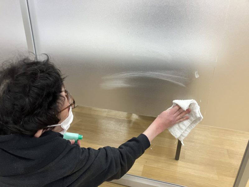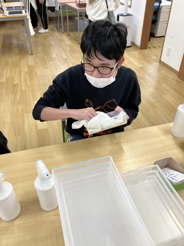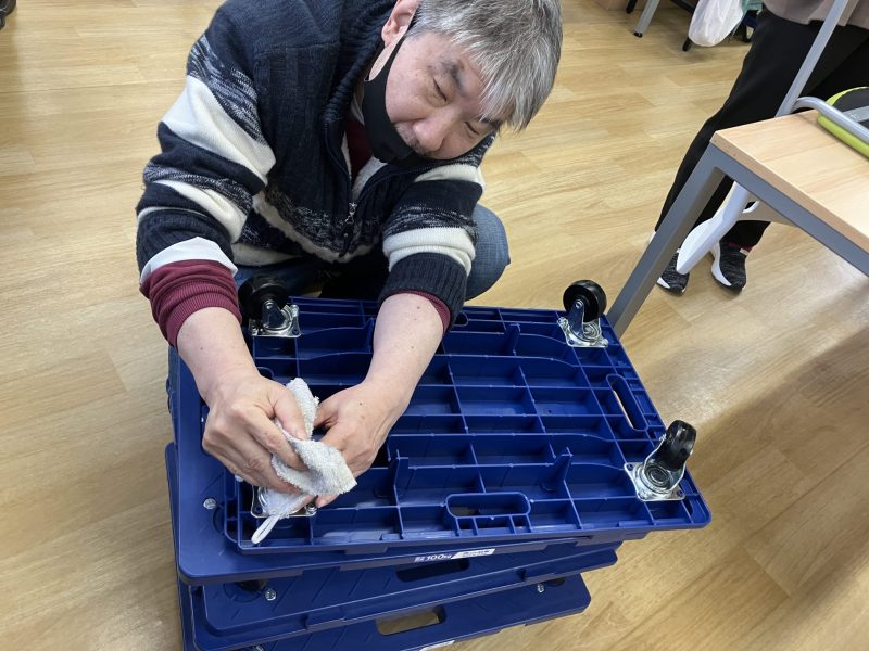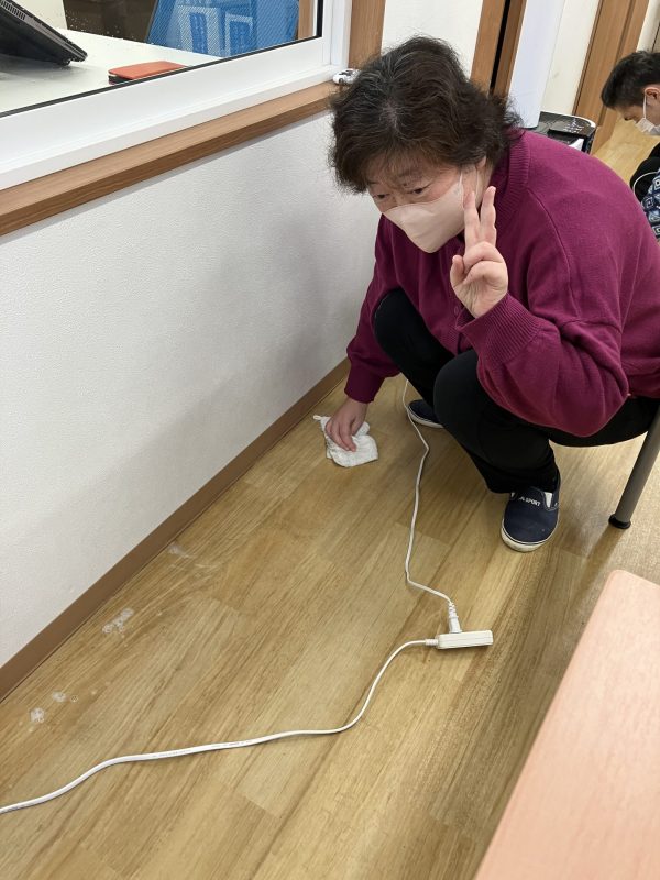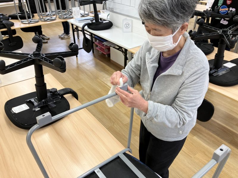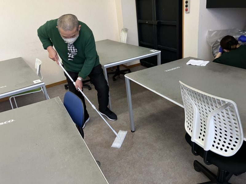 窓ふきや床磨き、また、日々の活動で使ってきた作業道具やイスの裏まで丁寧に掃除し、「今年もありがとう」という気持ちを込めて、一つ一つきれいにしていきました。