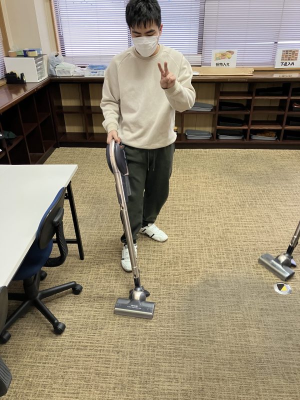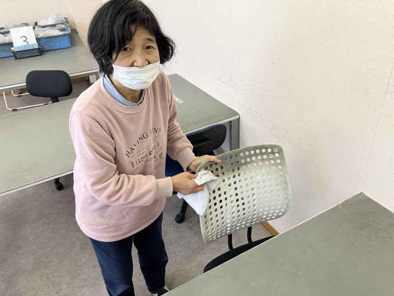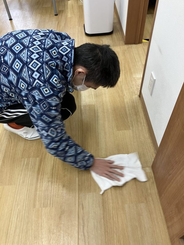 窓ふきや床磨き、また、日々の活動で使ってきた作業道具やイスの裏まで丁寧に掃除し、「今年もありがとう」という気持ちを込めて、一つ一つきれいにしていきました。