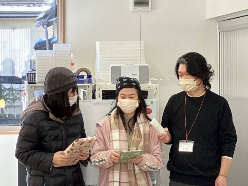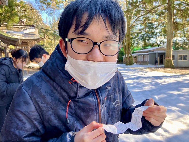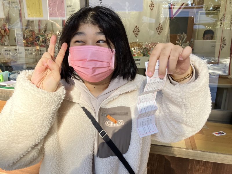 「大吉やったー!!」「小吉だったぁ〜!」と、メンバー同士や職員と見せ合いながら大盛り上がり。