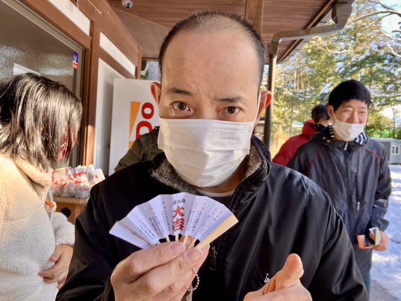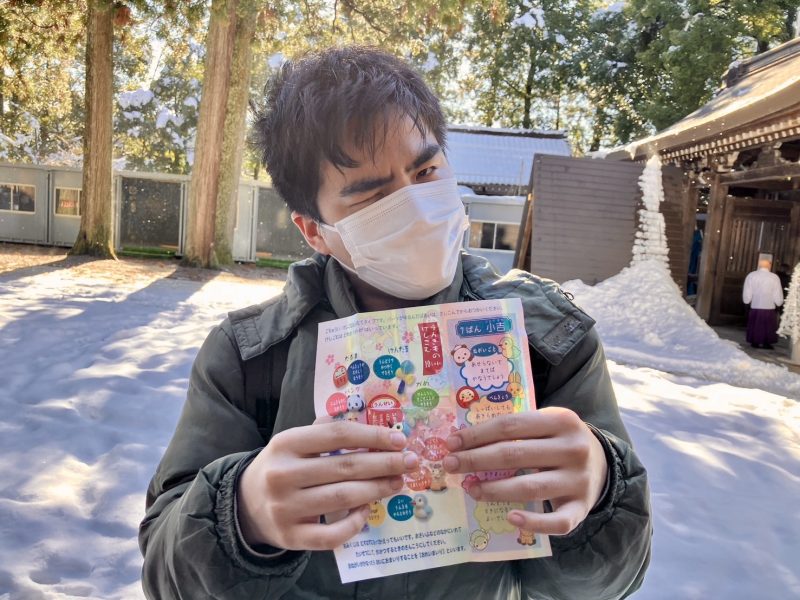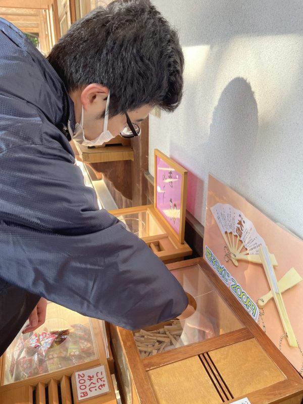 「どれにしようかな?」と悩みながら、それぞれ好きなおみくじを選びました。