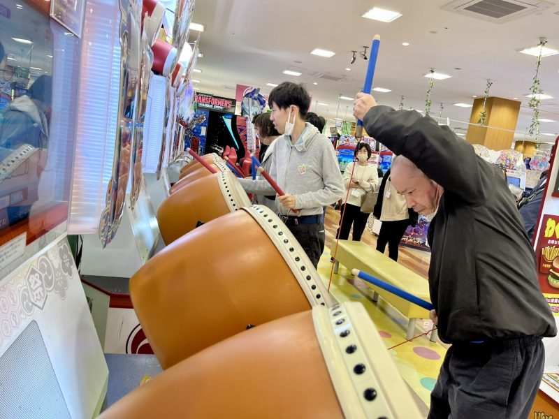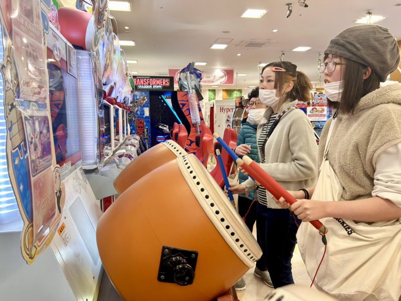 太鼓の達人では、リズムに合わせて力いっぱい太鼓を連打!