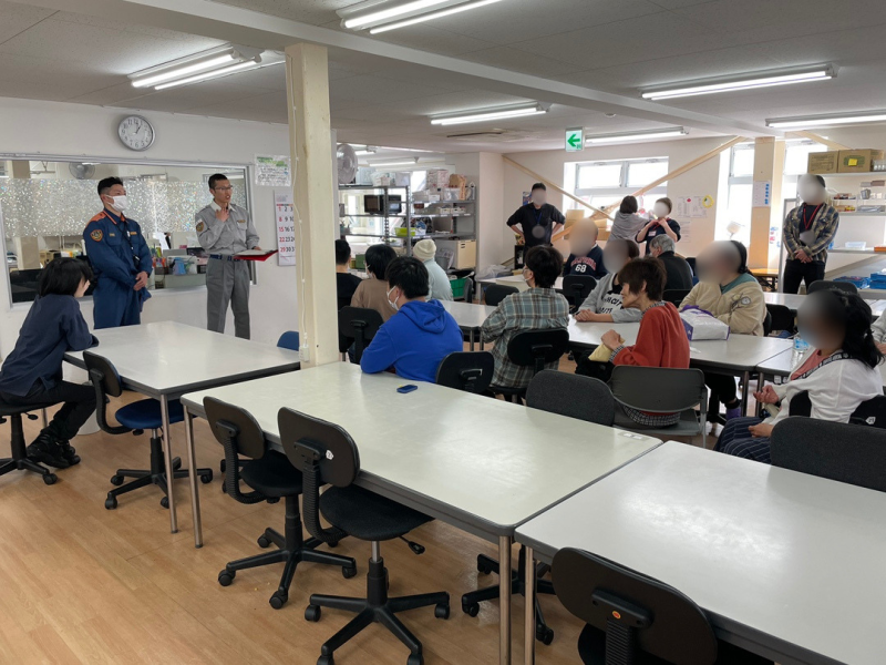 富山消防署中分署の方々より、喉にモノが詰まった時の対処法についてのお話を聞きました。