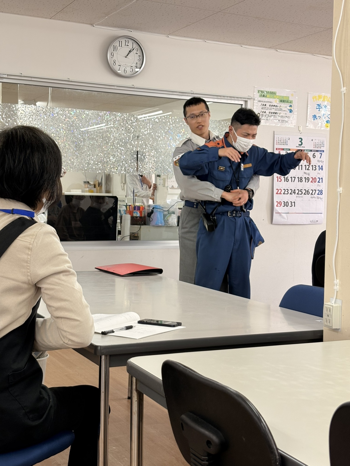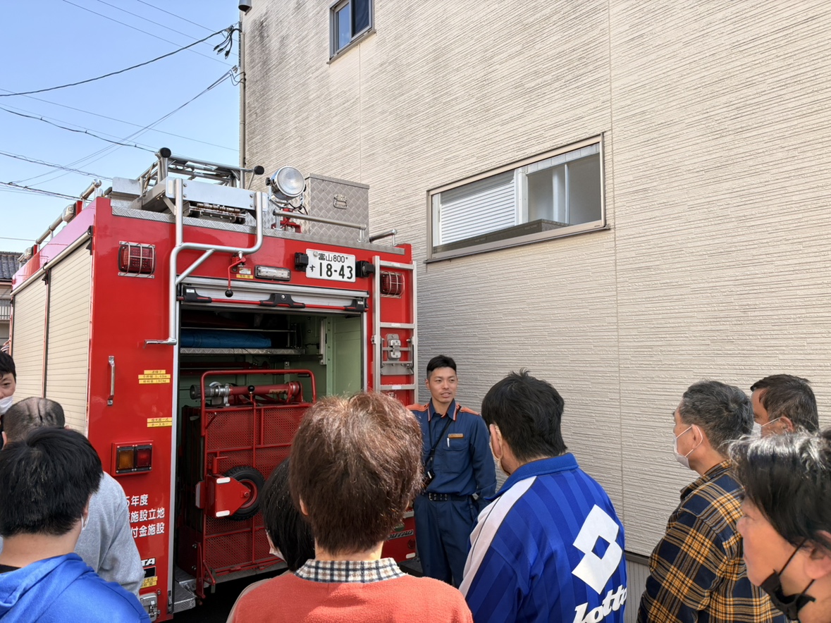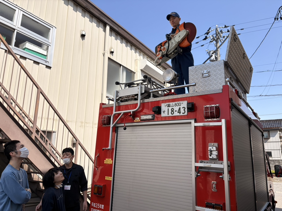 富山消防署中分署の方々より、喉にモノが詰まった時の対処法についてのお話を聞きました。