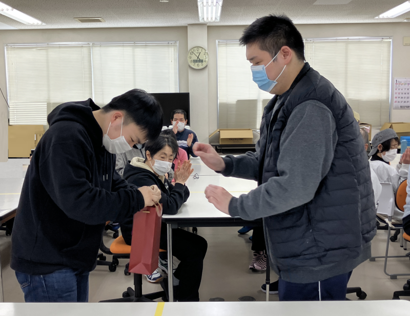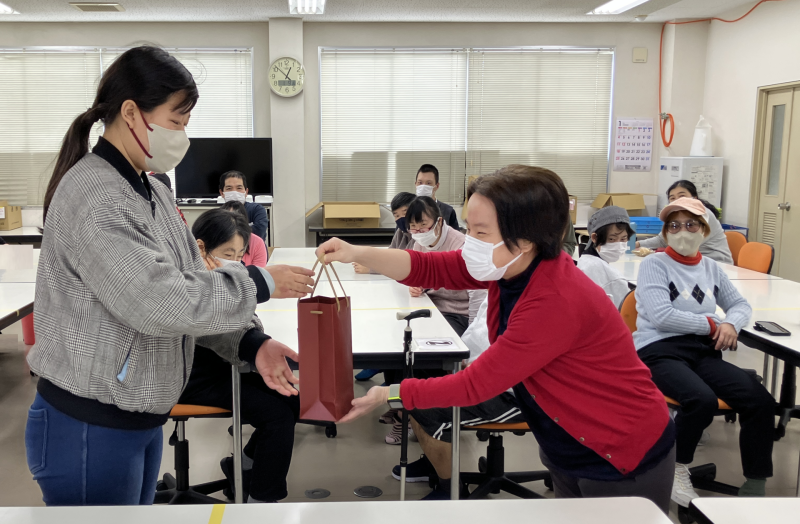 お祝いの言葉とともにお祝いの品が手渡されました。